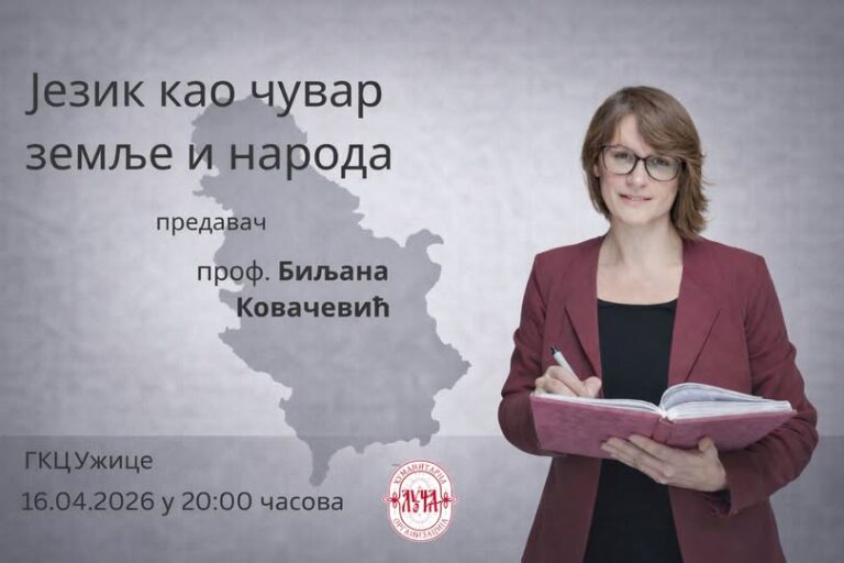 У Ужицу ће сутра, 16. априла у 20 часова бити одржана добротворна трибина под називом „Језик као чувар…