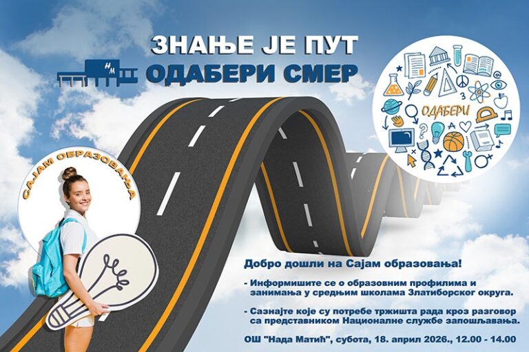 Сајам образовања „Знање је пут, одабери смер“ биће одржан сутра, у суботу 18. априла, у Основној школи „Нада…