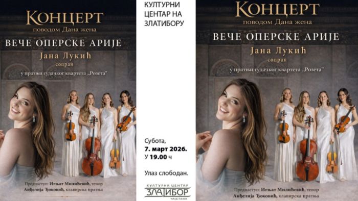 Поводом обележавања 8. марта – Међународног дана жена, у Културном центру Златибор у суботу, 7. марта 2026. године, са почетком у 19 часова, биће организовано вече оперске арије.